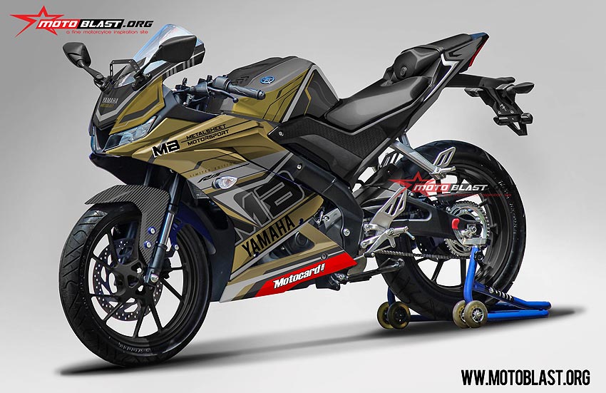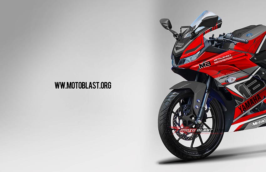 Halo mas dab.. kali ini motoblast akan membuatkan modifikasi striping untuk motor All New Yamaha R15 dengan kombinasi warna hitam dan merah serta abu abu dengan garis garis elegan, monggo di intip