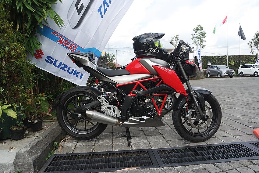 Halo mas dab… saat motoblast mengikuti fun touring blogger yang di selenggarakan oleh Suzuki Indonesia yang saat itu ada 6 blogger yang mengexplore keindahan bali selama 3 hari dan touring dengan produk suzuki seperti GSX Series, bebek, dan maticnya, disana motoblast melihat penampakan suzuki GSX-S150 milik dari kepala bengkel suzuki Kuta bro Fumi yang di rombak abis dengan kreatifnya berubah menjadi sosok mv agusta brutale wannabe .. woww