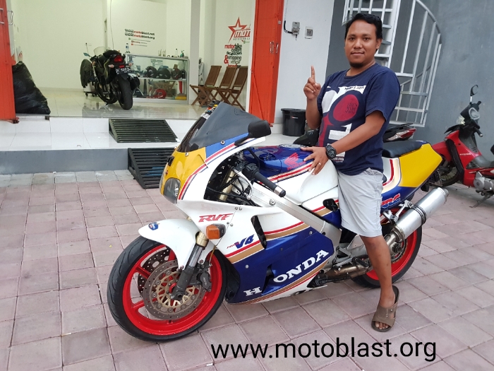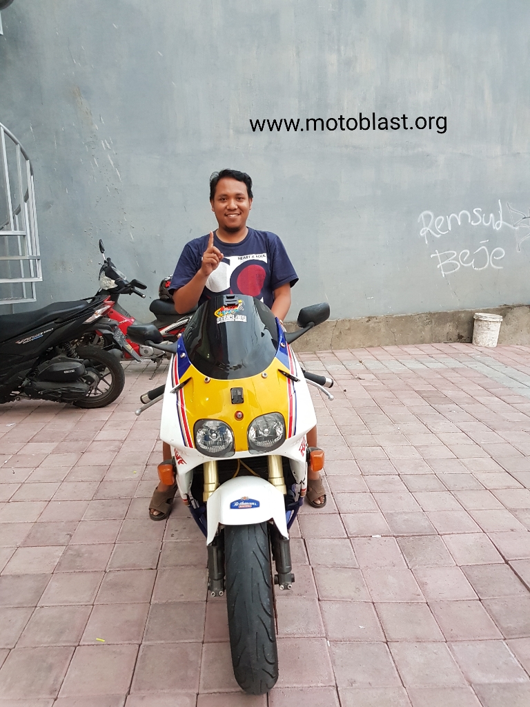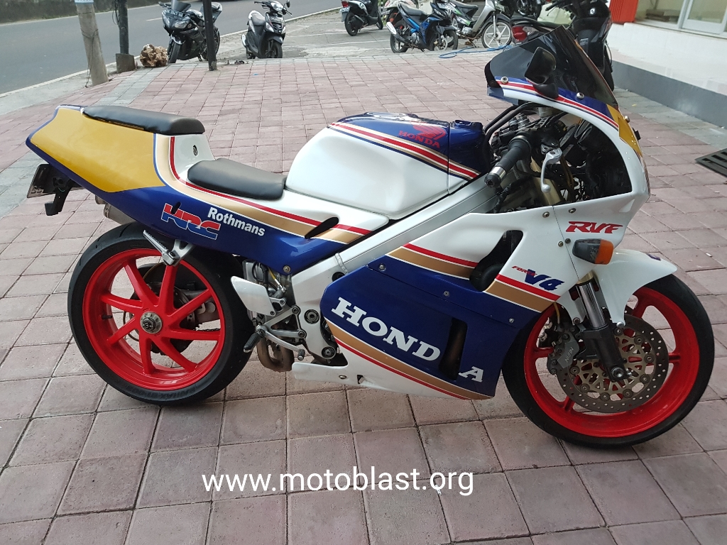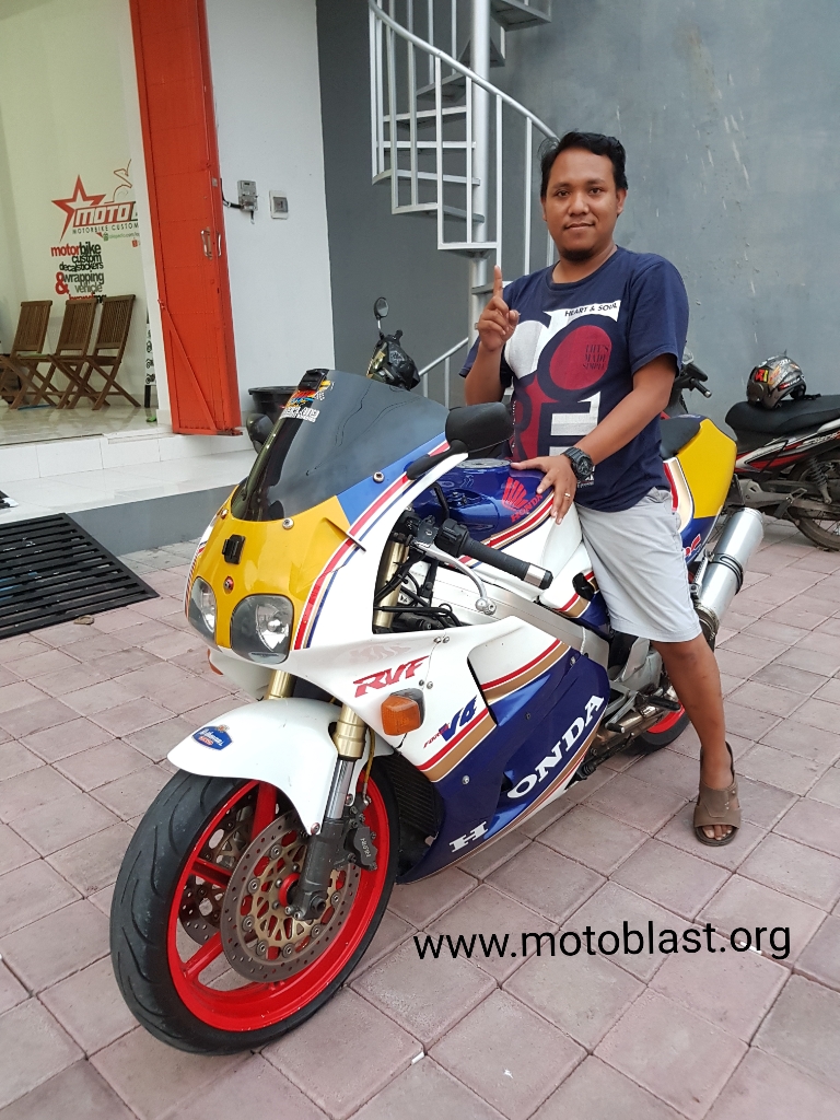 Sore tadi 9/10 2017 motoblast kedatangan tamu temen pecinta motor moge lawas man unik yaitu honda RVF400 force 4 yang bermesin 400cc 4 silinder V atau V4. Naah namanya juga orang ndeso..ya pasti kepo dan langsung melihat lihat secara detail dan motoblast di buat kagum bro…gimana tidak..motor ini semua masih ori kecuali cat saja yang sudah di repaint.. dan selain itu juga raungan mesin yang luar biasa merdu karena mesin V4. Khas 4 silinder namum V membuat semuanya menjadi istimewa bro..asli bakal buat jatuh cinta bagi siapa saja yang mendengarnya..