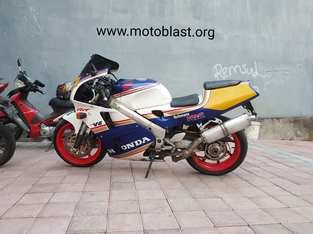 Bagaimana dengan powernya? Jangan ditanya masbro..menurut data power honda RVF V4 ini mencapai 53hp malah ada yang mengatakan maksimum powernya 61hp dan torsi 35nm dan mampu mengail topspeed hingga 217km/h data ini motoblast dapat dari berbagai sumber web otomotif di luar negeri dan wikipedia.. motor ternyata dibuat tahun 1994 sampai 1996 dengan kompresi 11:3:1 dan sudah liquid cooler.