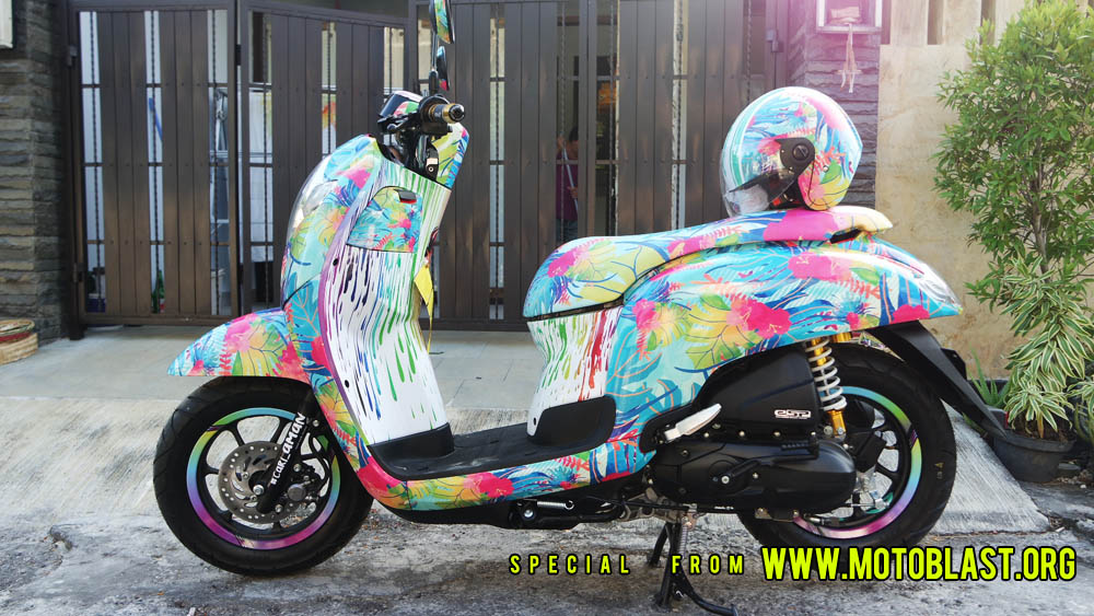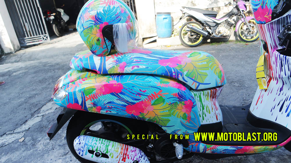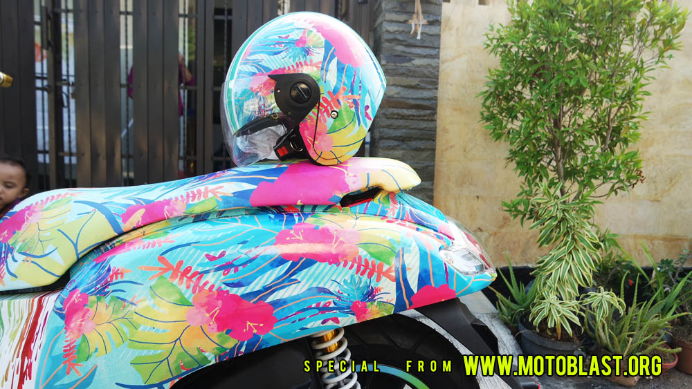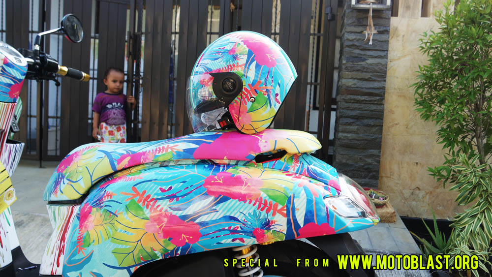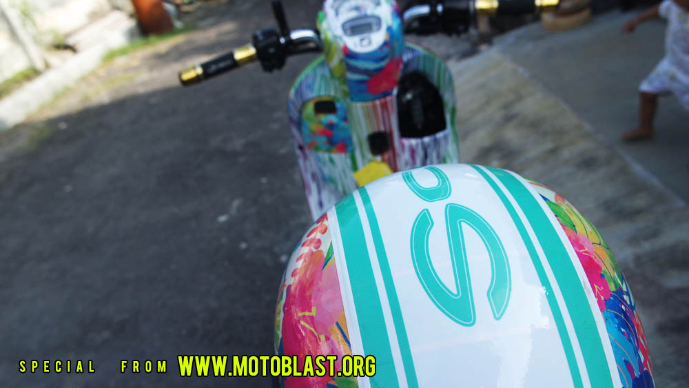 Sebagai contoh sebelumnya Motoblast sudah membuatkan briefing decal stiker untuk helm bawaan dari motor Honda Scoopy yang pada waktu itu motoblast buat seragam dengan Honda Scoopy dengan tema pantai Masbro bisa lihat sendiri fotonya dibawah ini…