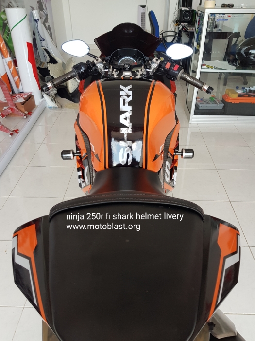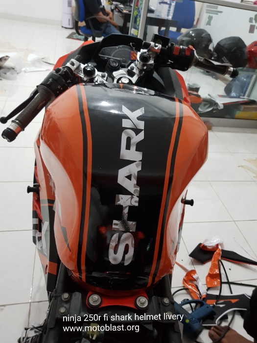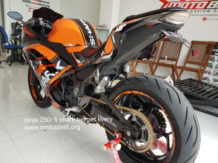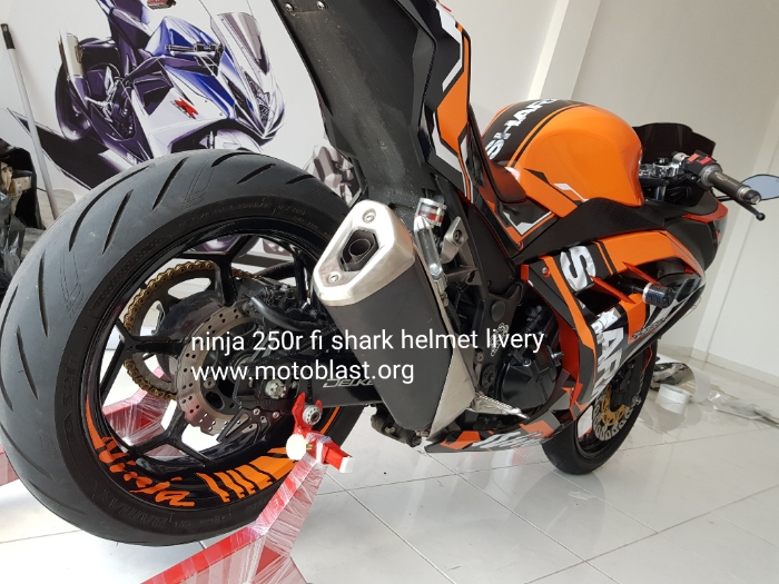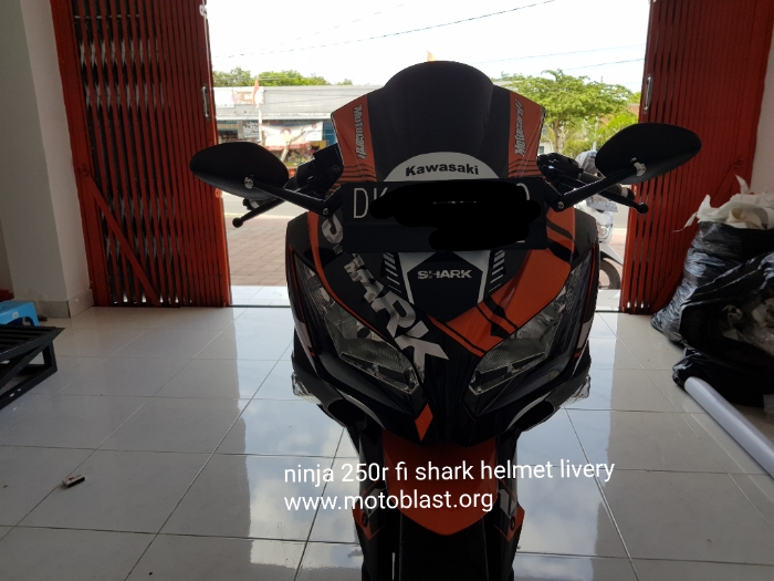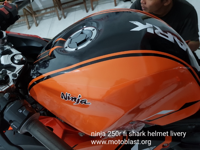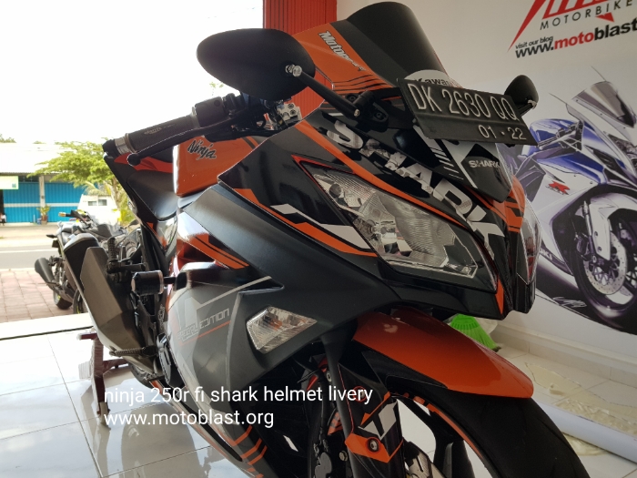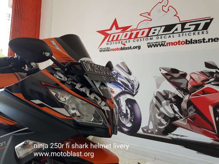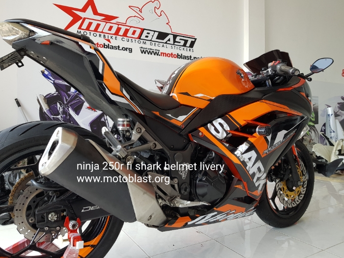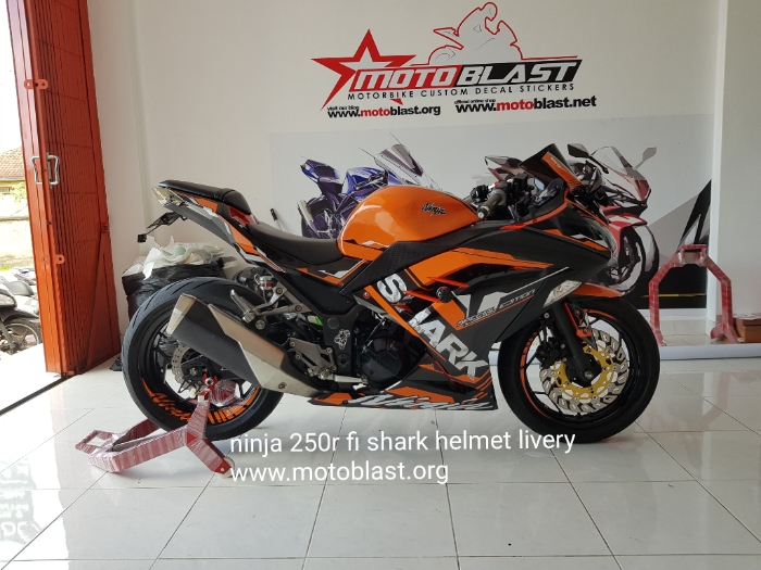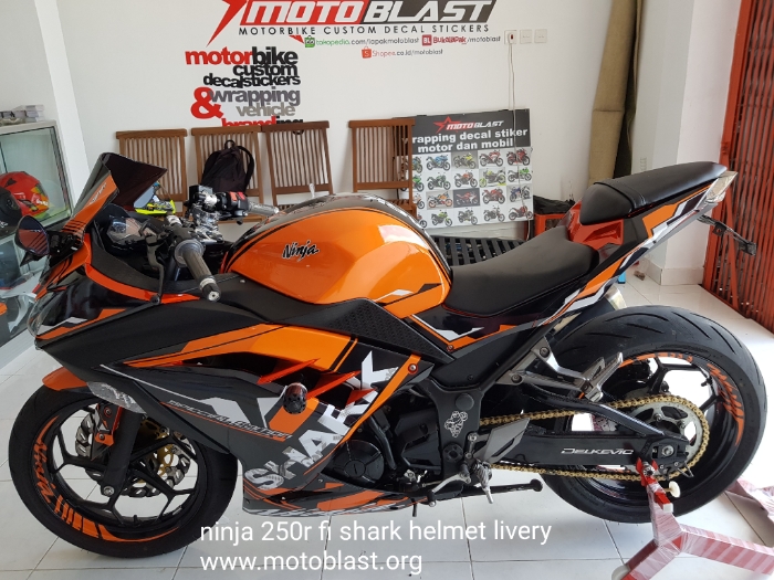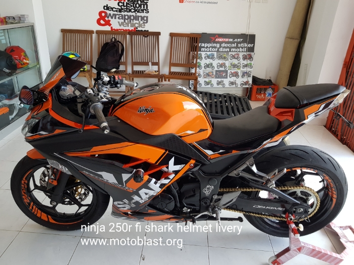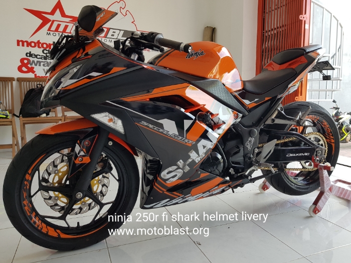 Naah inilah hasipnya decal stiker kawasaki ninja 250r fi orange livery shark helmet. Motoblast.org < a