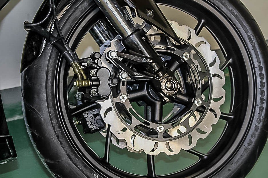 Kendati motor china tapi geely phantom ini memiliki fitur canggih seperti shock sudah upside down dan untuk pengereman sudah double disc depan. Wowww