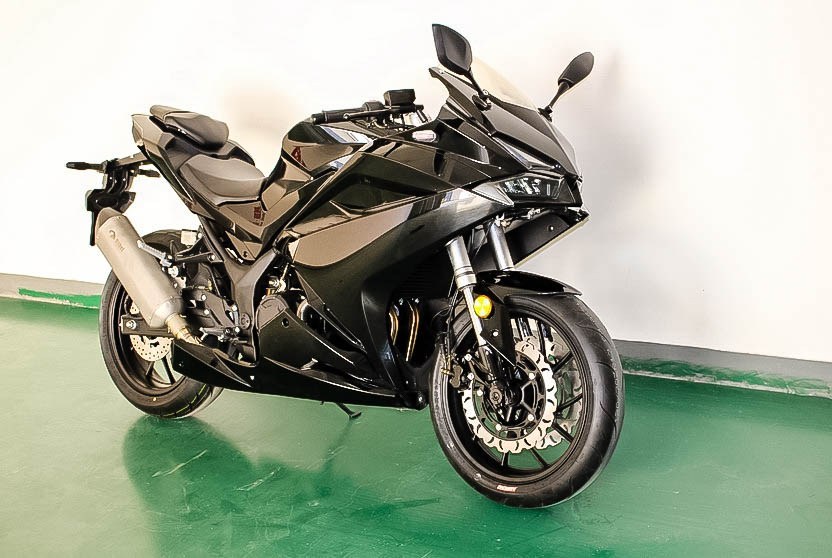 Dari bagian samping tangki mirip dengan ninka 250r sedangkan rangka nya mirip dengan yamaha R25.