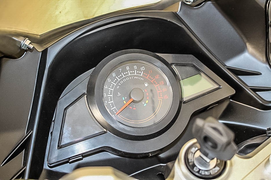 Bagian speedometer mirip dengan milik ninja 250r yang tidak full digital, masih analog walaupun analog tidak mengurangi desain secara keseluruhan.