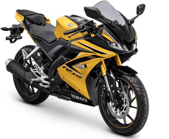 Varian warna baru dari yamaha R15 V3 dengan kombinasi warna hitam doff, kuning, dan biru hitam serta shock USD yang berwarna gold, kini berganti menjadi warna lama yang seperti semula