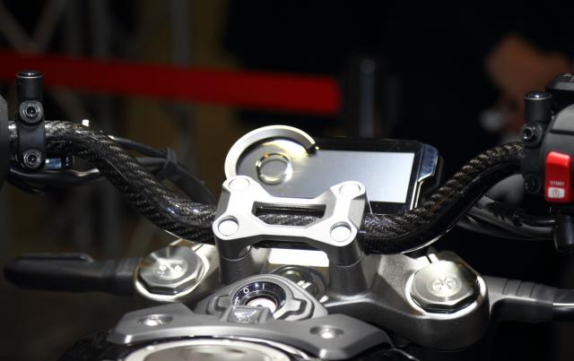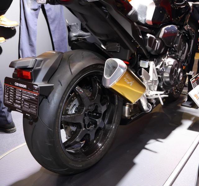 Yang terlihat jelas dari Honda CB1000R ini menggunakan bahan karbon pada bagian velg bro.. dengan pro arm bagian belakang atau single arm..terlihat sangat manis dan gagah dengan velg bermotif karbon..