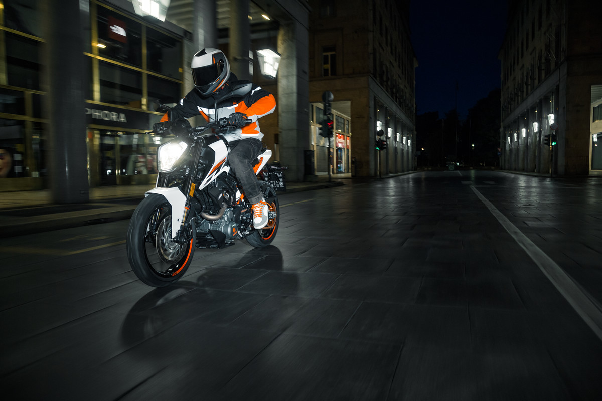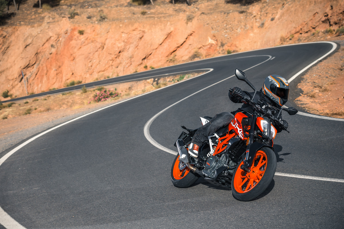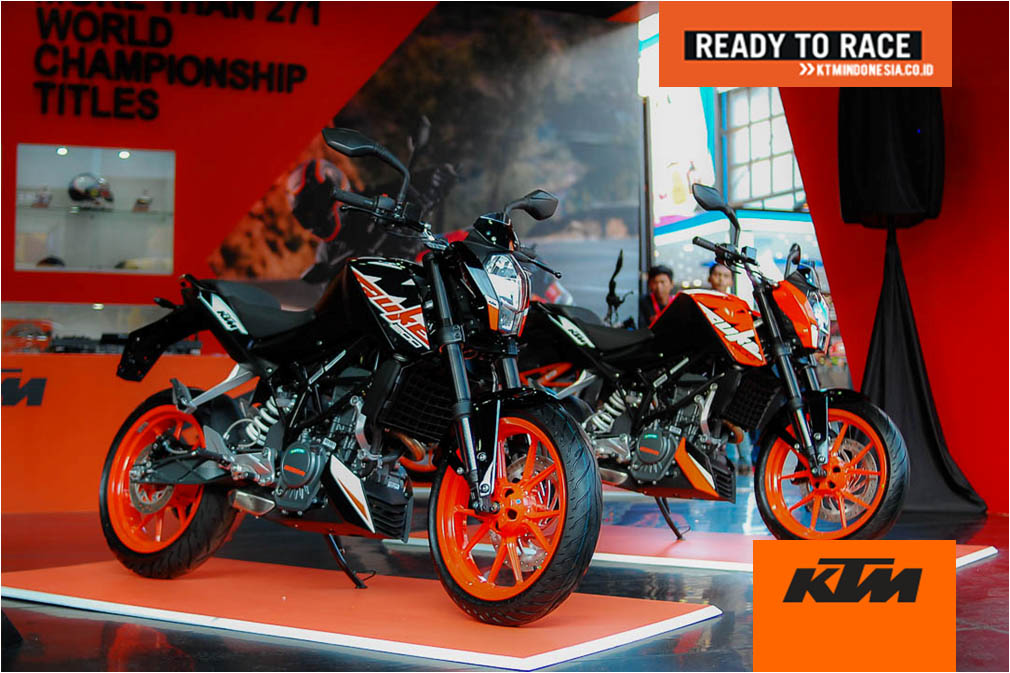 KTM Duke 200 adalah Sport Naked Bike KTM yang memiliki spesifikasi terbaik di kelasnya. Bermodalkan mesin bersilinder tunggal, DOHC, 200 CC, dan dipadu dengan Suspensi superior Upside-Down di depan dan Monoshock di belakang dari WP Suspension, KTM Duke 200 adalah Streetbike harian yang tangguh, lincah, dan dapat diandalkan. KTM Duke 390 adalah Varian Sport Naked Bike KTM yang siap memompa adrenalin siapapun yang mengendarainya. Mesin 390 CC Satu Silinder DOHC dengan kompresi tingginya dapat memberikan sensasi berkendara yang unik, menghibur, dan reliable.