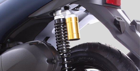 Pengendara bisa semakin percaya diri melibas semua jalanan dengan Sub-Tank Suspension.** Berbekal Tubeless Wide Tire dengan ukuran ban depan 90/90-14″, dan ban belakang 100/90-14″ memberikan pengalaman berkendara yang nyaman dan stabil saat bermanuver. Dalam kondisi jalan berlubang atau bergelombang sekalipun bepergian dengan orang tersayang tetap nyaman.