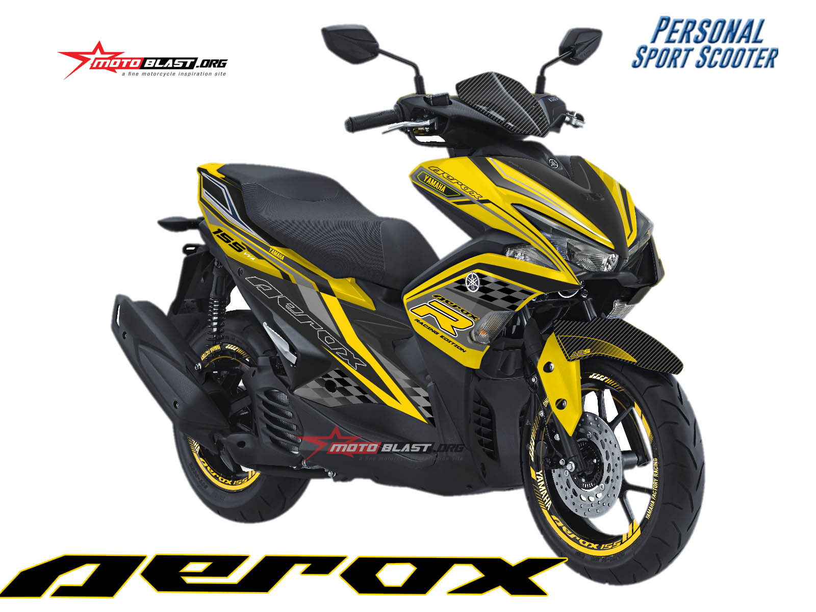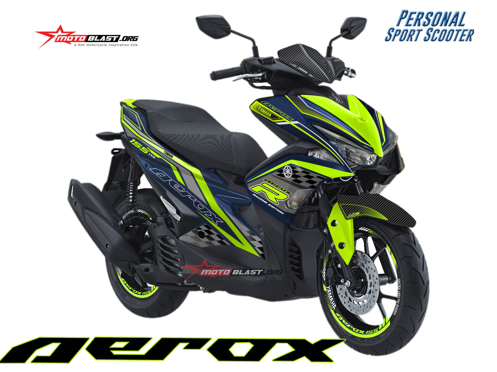 Modifikasi Striping Yamaha Aerox 155 dengan tema Techno Sport dengan berbagai warna dari biru, hitam, merah,, putih, dan kuning. Untuk inspirasi para rider aerox 155 vva dan para indenter aerox 155 vva yang butuh inspirasi desain terbaru striping aerox 155.