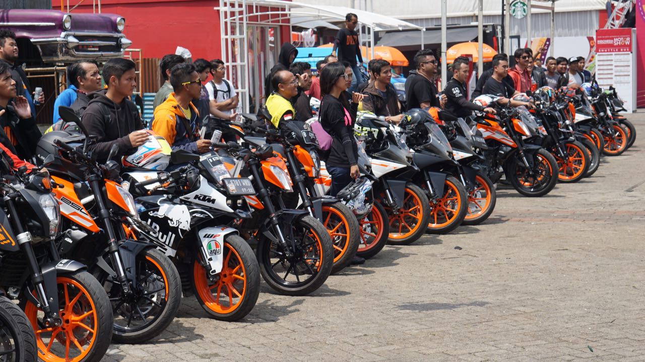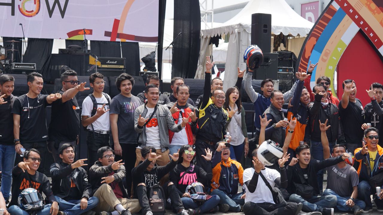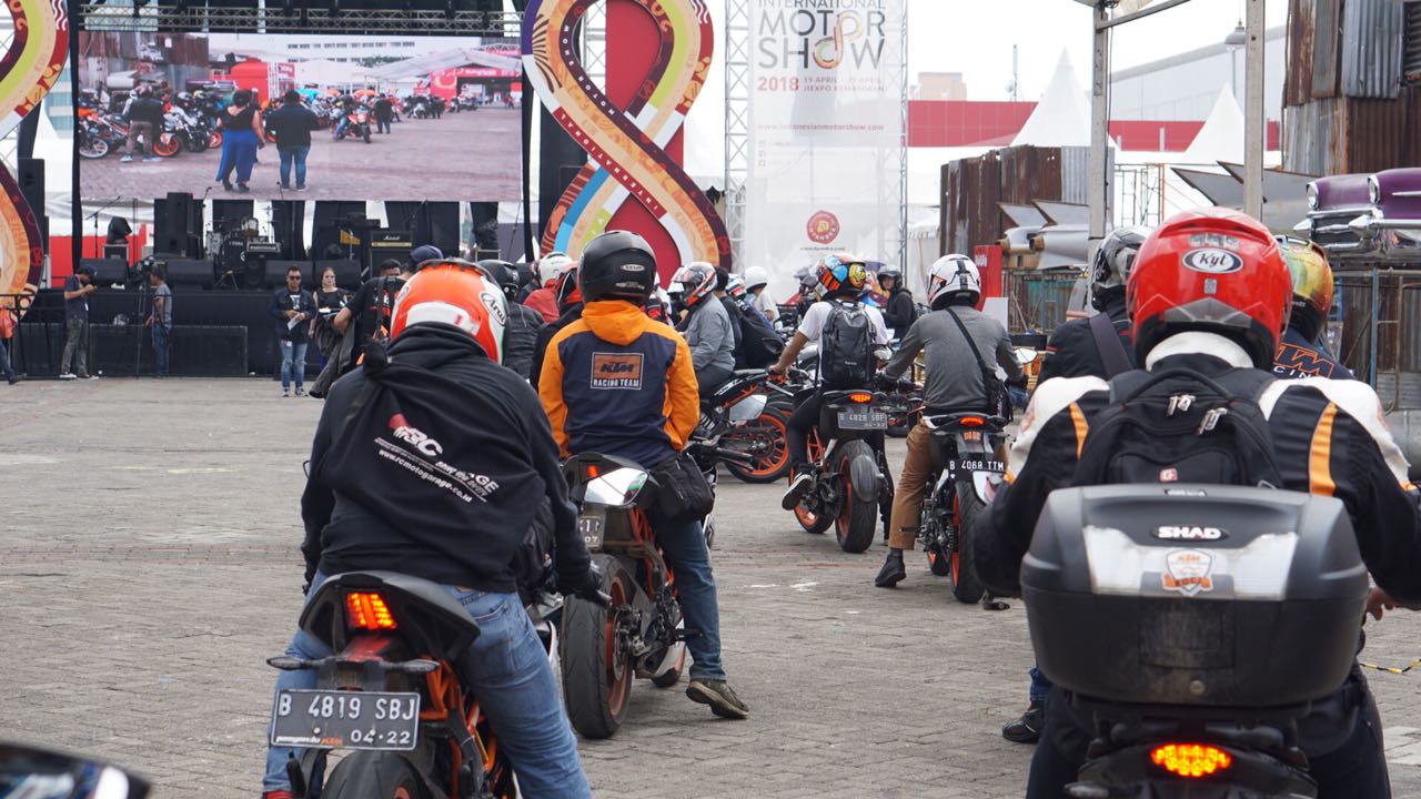 Para komunitas juga menghadiri undangan Principal KTM yang saat sekarang lagi berpartisipasi dalam event besar IIMS-2018 (Indonesia International Motor Show) tepatnya booth KTM berada dihall C1a.