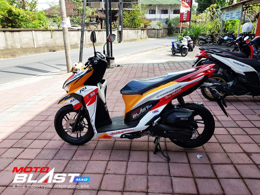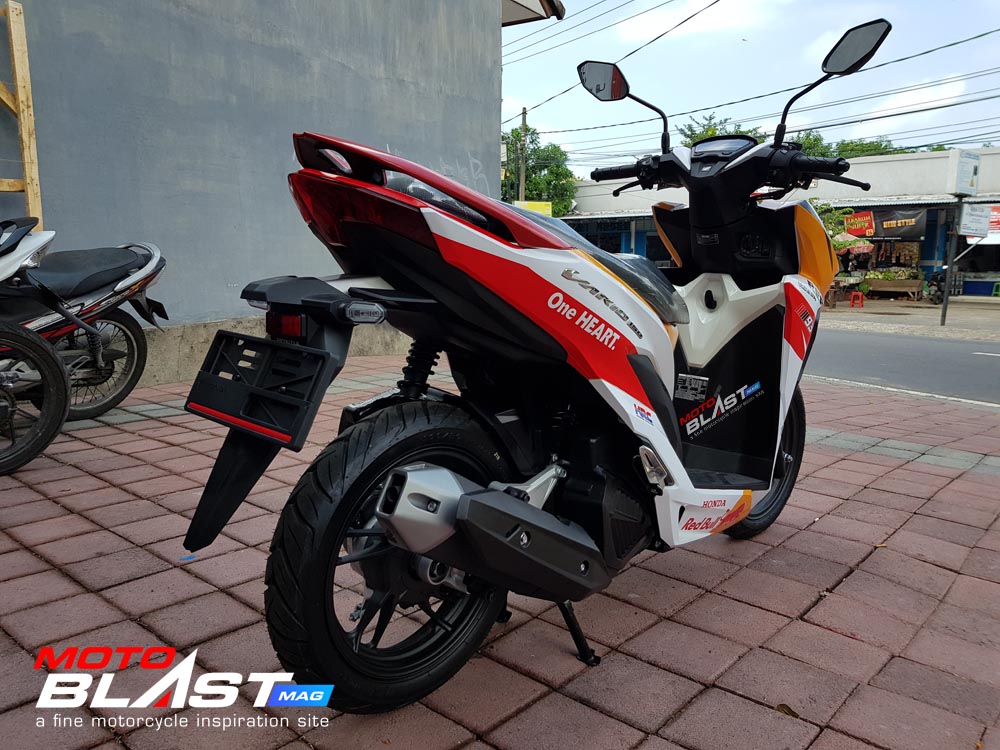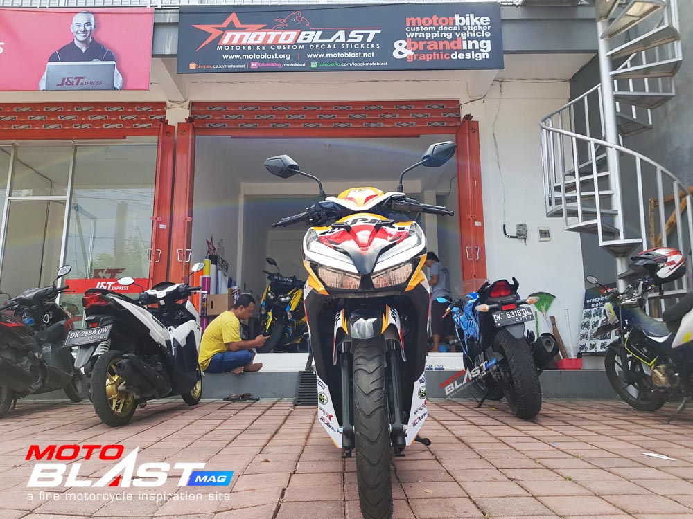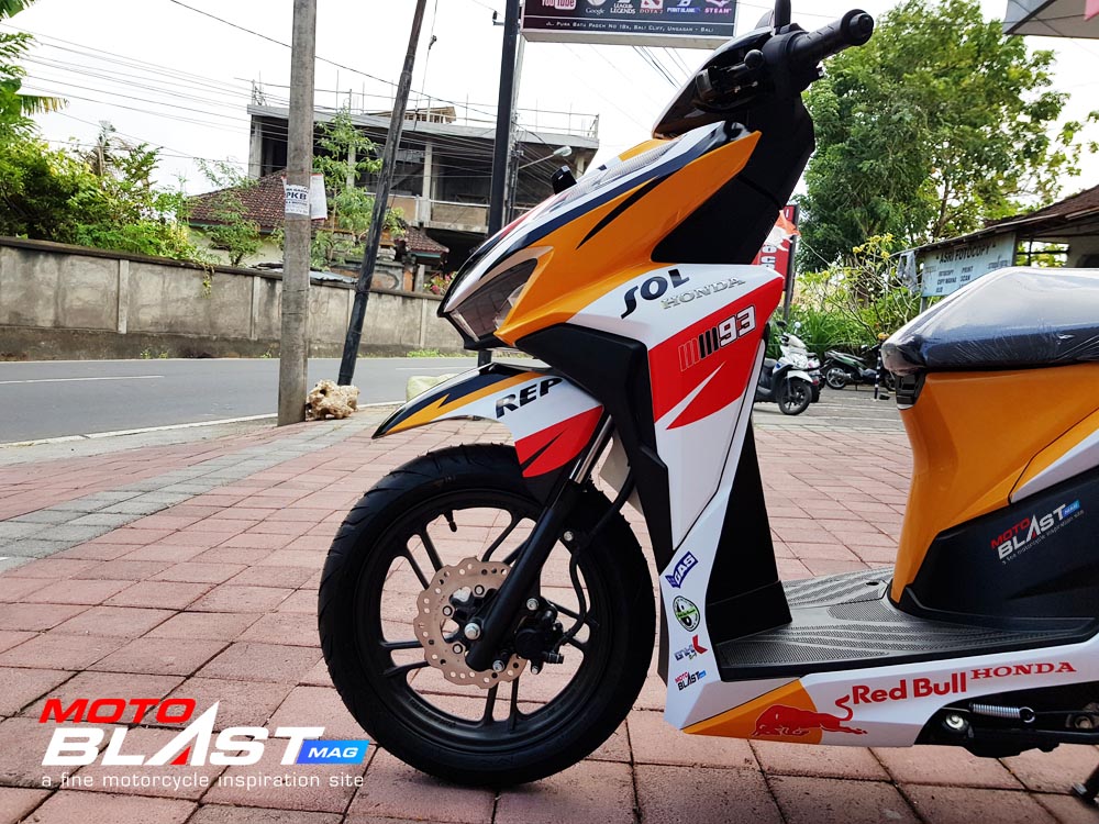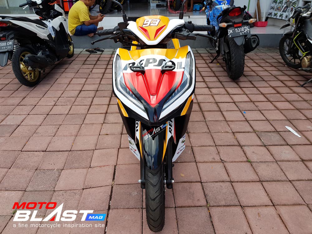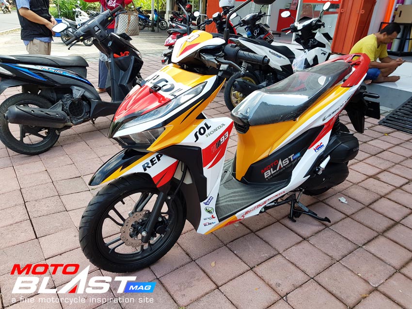 Halo mas dab.. kali ini motoblast mau share sebuah motor Vario 150 terbaru 2018 warna dasar putih yang di decal stiker livery Repsol buatan motoblast yang merupakan request dari konsumen motoblast yang langsung mengirimkan motornya ketika baru keluar dari dealer, langsung bro gak pake mampir ke empunya
