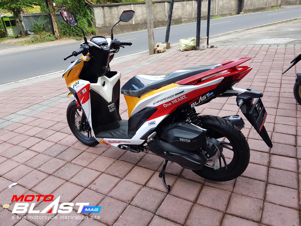 yup.. jadi gini, sebut saja Dr. BBM nama sebutannya yang memiliki vario 150 tebaru 2018 ini meminta motoblast membuatkan decal stiker untuk motor vario 150 terbaru 2018 yang di indentnya dan baru datang hari jumat malam kemarin tanggal 11 april 2018, naah uniknya nih yang punya sampai sekarang belum pernah menyentuh motornya karena dari keluar dealer langsung di kirim ke lapak motoblast yang berada di ungasan jadi motoblast waktu itu langsung serah terima motornya padahal bukan punya motoblast, hahaha tapi seijin yang punya Dr. BBM ini
