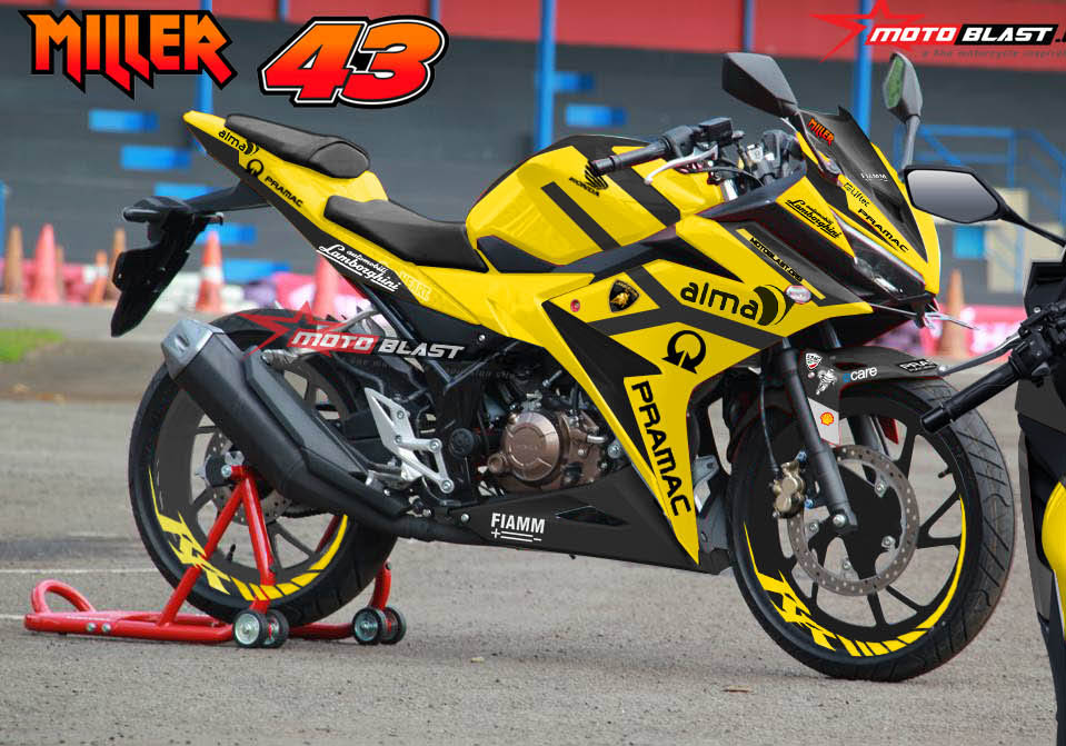 semoga Modifikasi Striping New Honda CBR150R Facelift livery Pramac Racing Lamborghini Miller dan Petruci bisa menginspirasi bersama < a