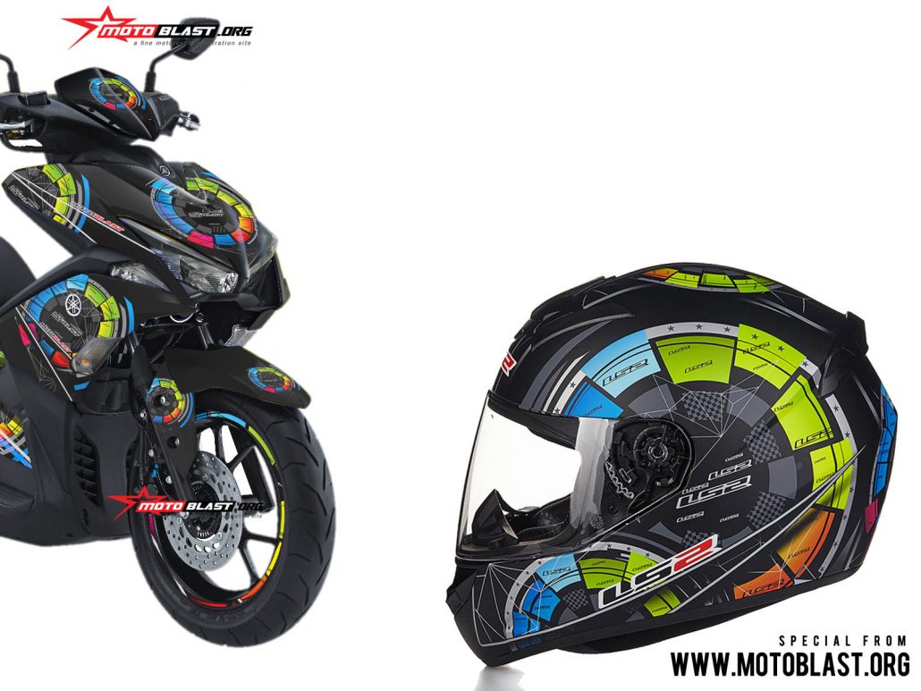 semoga Modifikasi Striping Yamaha Aerox 155vva Black livery LS2 FF352 Helmet bisa menginspirasi bersama < a