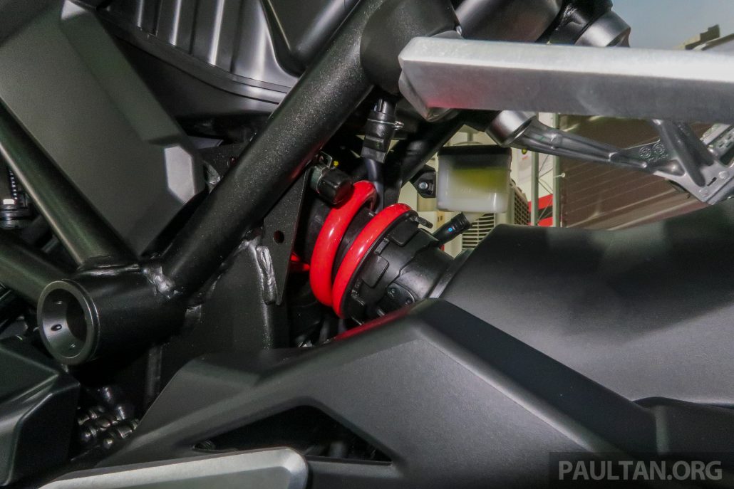 Dengan enam kecepatan, CBR250R memiliki berat 145 kg dan dilengkapi dengan rem cakram depan tunggal dan belakang, dengan ABS dua saluran. Ada tiga pilihan warna untuk CB250R – Matt Bullet Silver, Graphite Black dan Candy Chromosphere Red.
