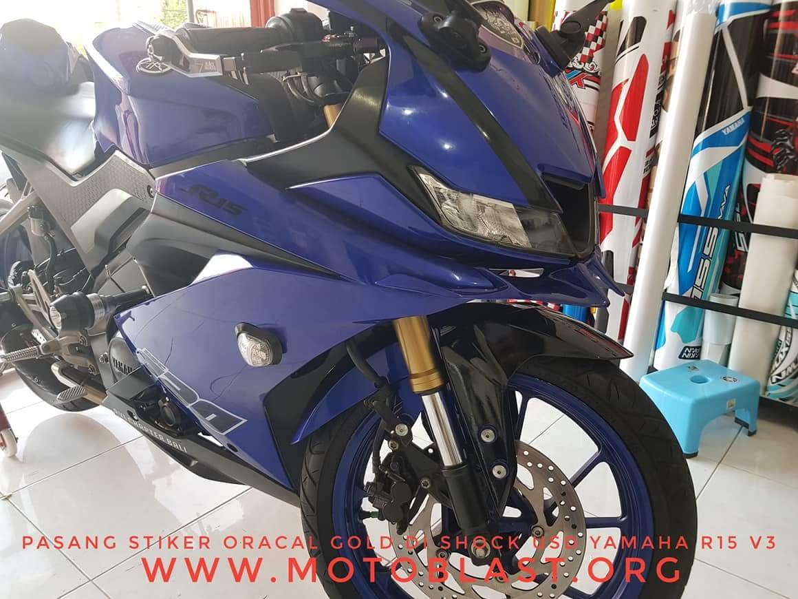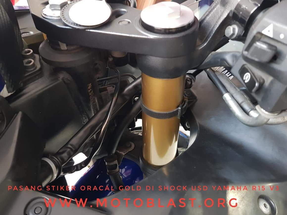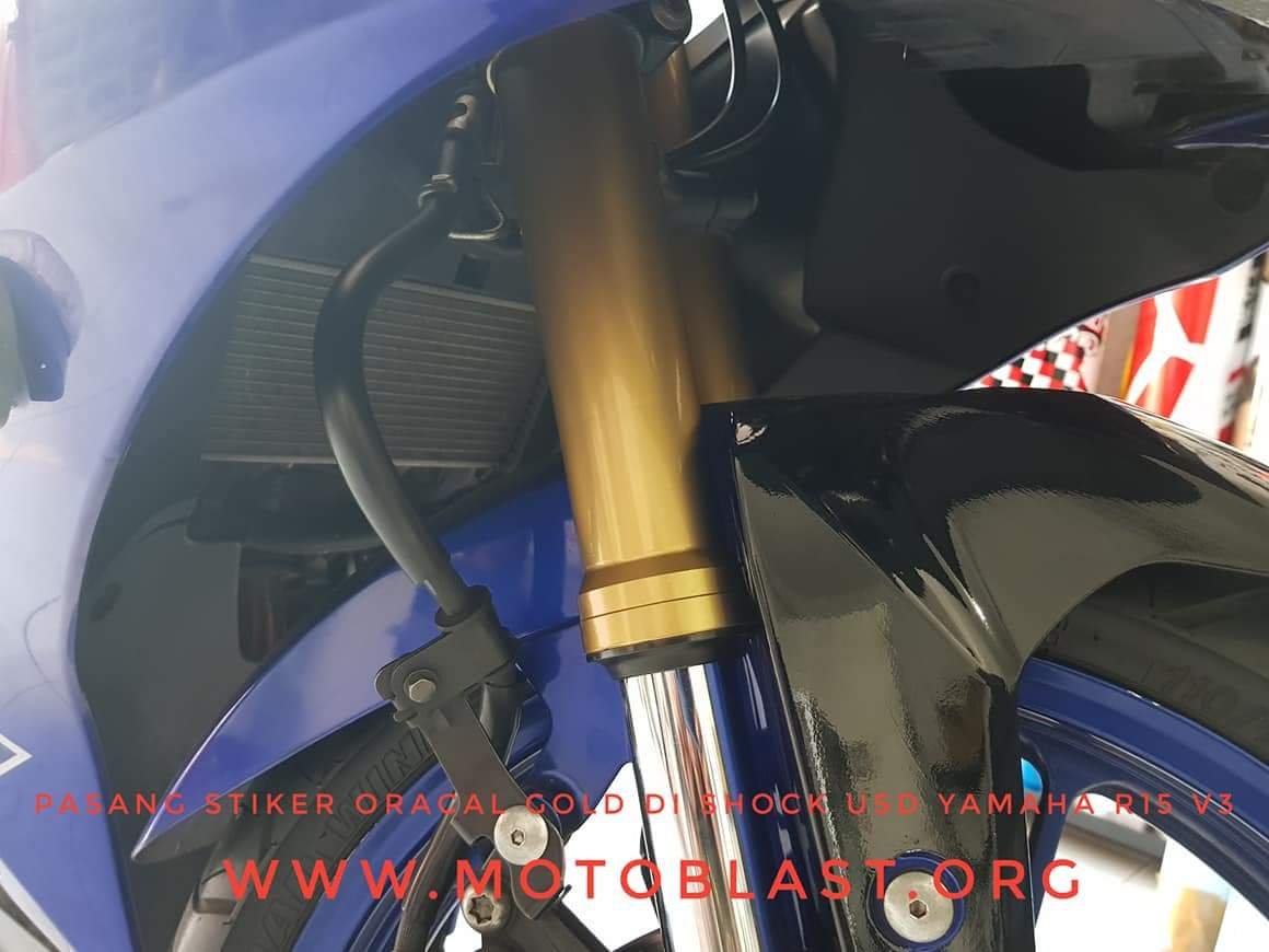 Berapa harga pasang stiker oracal gold di shock USD yamaha R15 v3 di lapak motoblast???