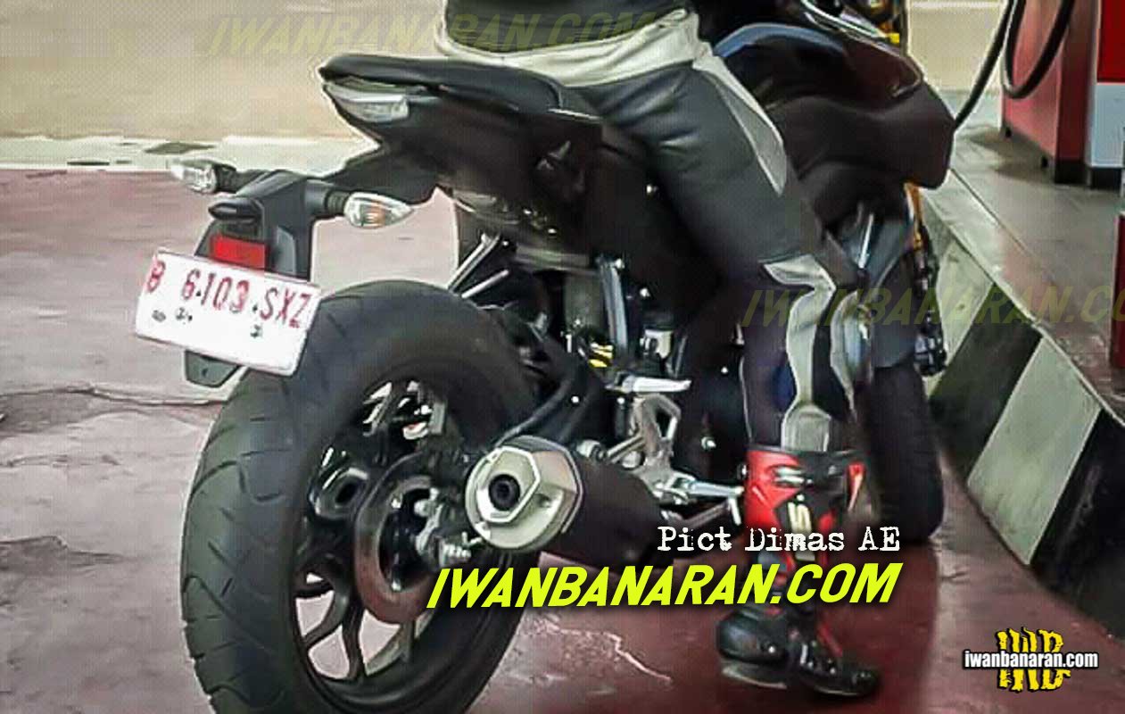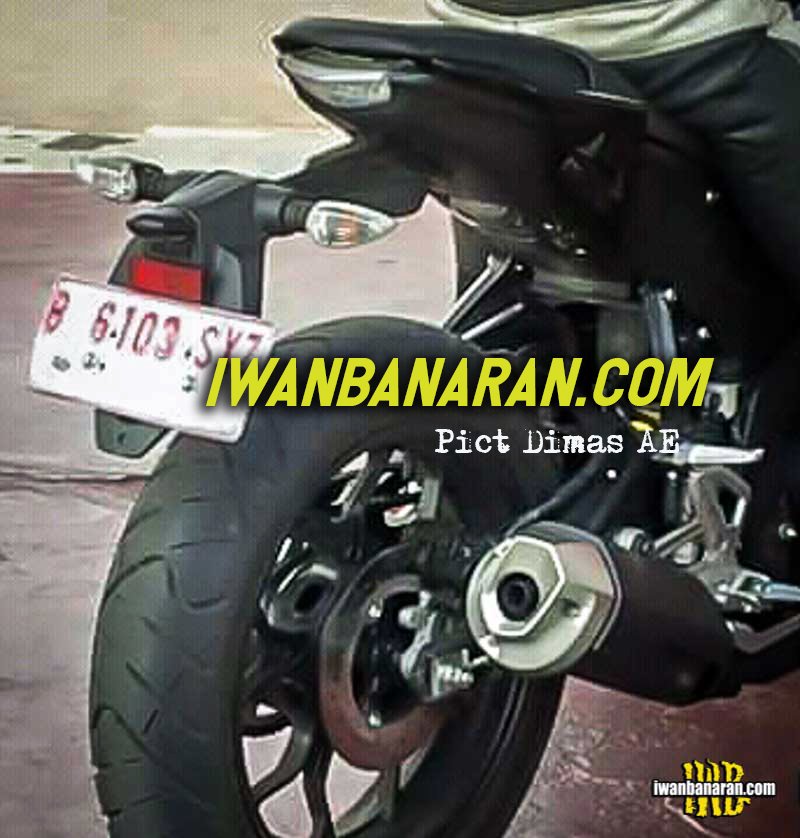 Sementara itu suspensi depan masih menggunakan upside down berkelir emas dengan penampakan knalpot yang mirip dari milik yamaha r15 v3.