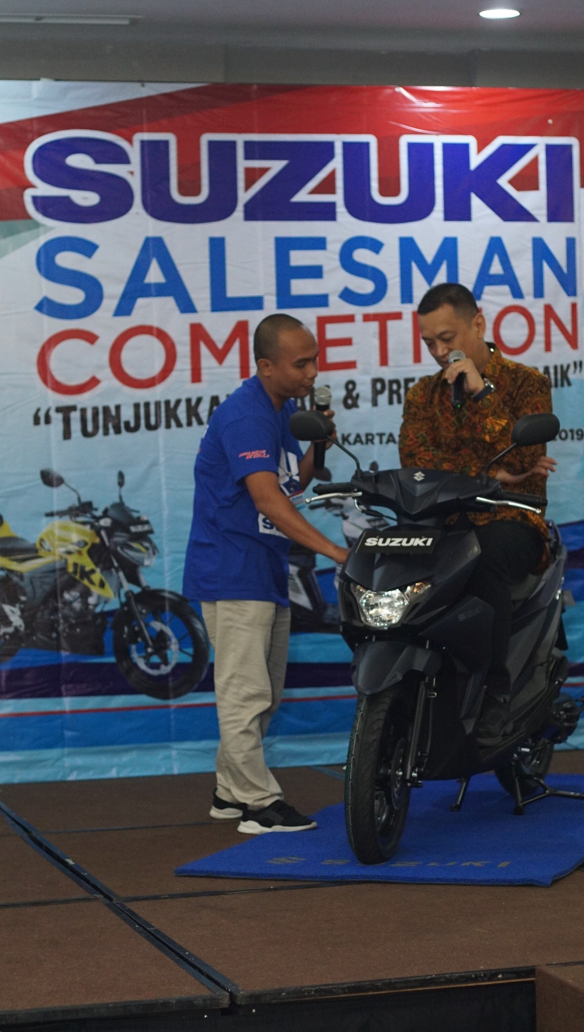 Jakarta, 27 Februari 2019 – Guna meningkatkan semangat dan memotivasi para tenaga penjualan sepeda motor Suzuki di Indonesia, PT Suzuki Indomobil Sales (SIS) kembali mengadakan ajangSuzuki Salesman Competition 2019 pada25 – 27 Februari 2019 di Hotel Santika, Kelapa Gading. Kompetisi ini diadakandalam rangka memberikan penghargaan kepada Salesman Senior (pengalaman lebih dari 2 tahun), Salesman Junior (pengalaman kurang dari 2 tahun) dan Salescounterterbaik di seluruh jaringan penjualan sepeda motor Suzuki di Indonesia. Sebanyak 83 peserta terpilih yang berasal dari 30 jaringan di Indonesia berkompetisi di Jakarta untuk membuktikan siapa yang terbaik.