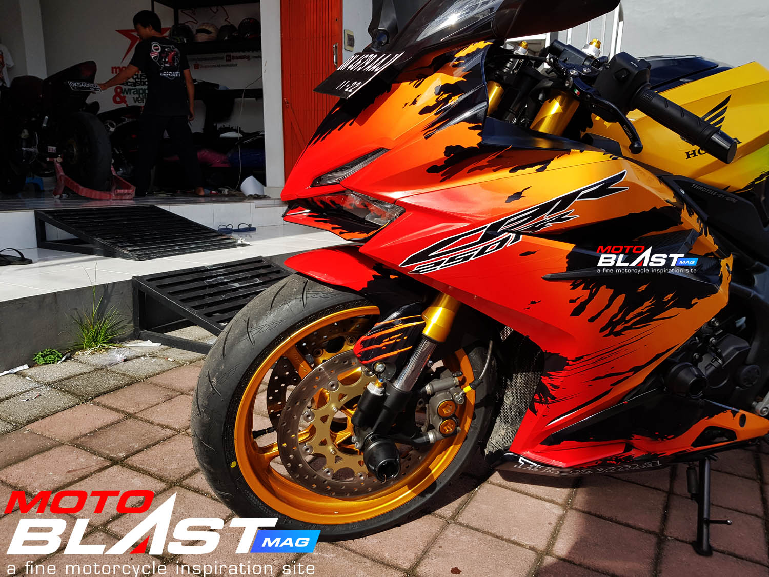 Naah penasaran bagaimana sih penampakan honda cbr250rr modif hedon dengan striping BUTO AGNI dari motoblast ?