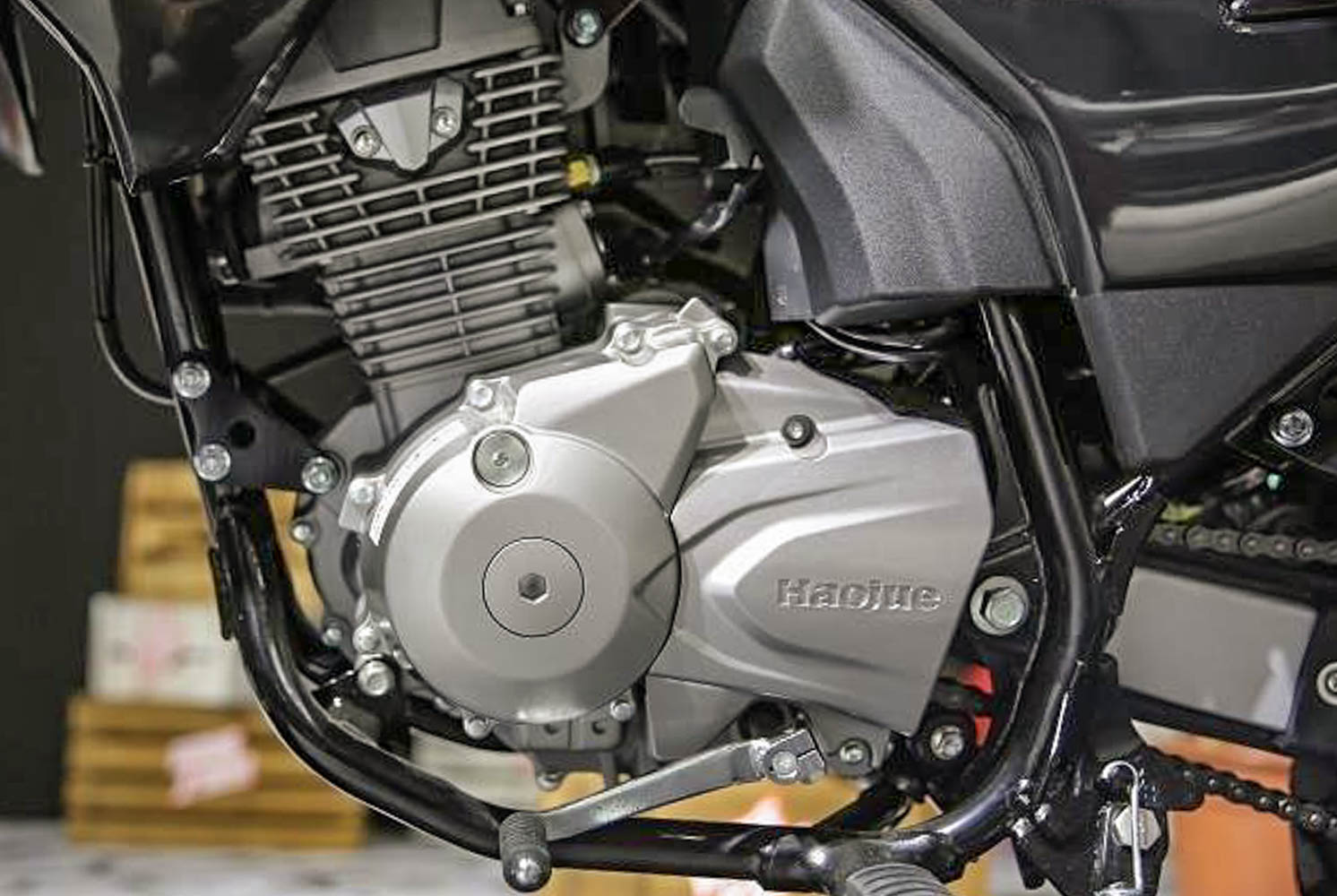 Oke deh,kalau begitu mari kita telisik sosok Haojue NK150 ini satu persatu, pertama dari bentuknya terlihat seperti bukan pure motor trail atau adventure bro, melainkan masih bisa di katakan semi adventure karena modelnya yang setengah bisa di pakai di jalan raya ataupun model garuk tanah.